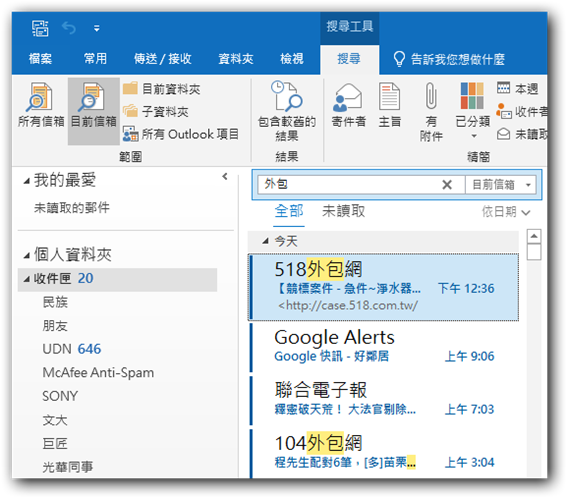 OUTLOOK搜尋問題