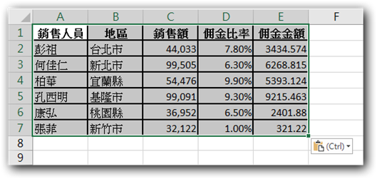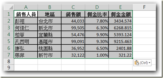 3. 按Ctrl+C,將表格複製到剪貼簿。