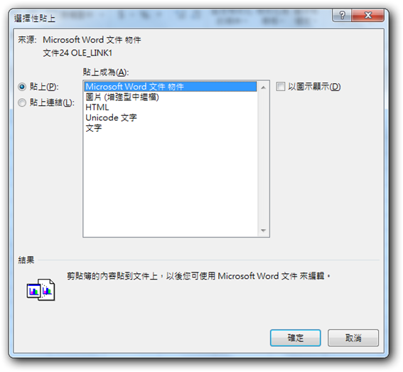 1. Microsoft Word 文件 物件是以Word中的方式顯示,如下圖所示。