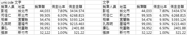 4. Unicode文字和文字都是以文字的方式插入到Excel中(無邊框),如下圖所示。