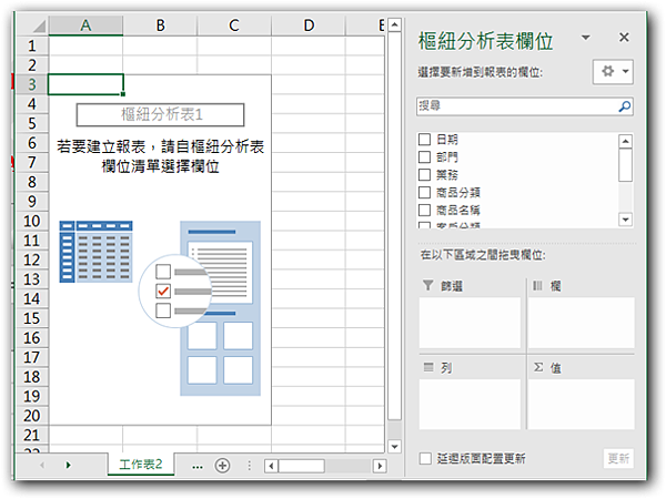 4.點取「確定」鈕,建立一個空白樞紐分析表。