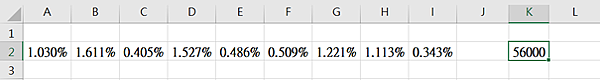 西門吹雪:「錦子老師您好,例如:我在欄位輸入數值,就會自動除於56000,變成百分比,我比較笨的方法是=1000/56000,但我很多格想快速輸入,要怎辦設定呢?麻煩解惑 ~ 感恩,謝謝!」