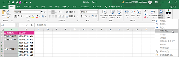 步驟2:點取「常用 > 尋找與選取▼鈕 > 特殊目標」指令。