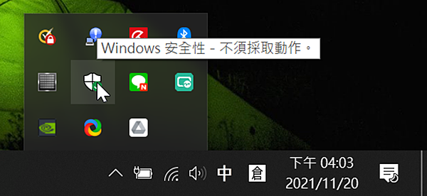 可以點取工作列「^ > WINDOWS安全性」圖示。