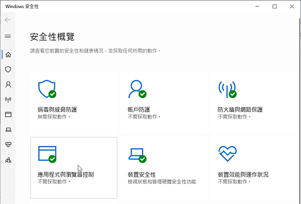 在【安全性概覽】頁面,點取「應用程式與瀏覽器控制」項目。