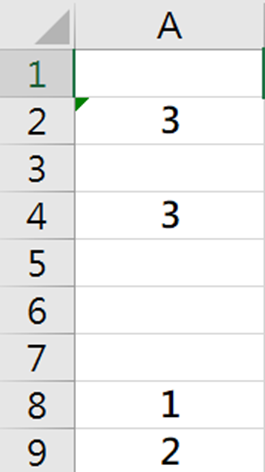 Excel如何得到A欄中最上方一個非空白的儲存格的值該如何寫呢? |