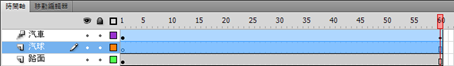 步驟5: 由於氣球設定是從汽車的車窗漂出來,故將滑鼠指標移到「汽球」圖層文字上方,按住滑鼠左鍵不放向下拖曳到「汽車」圖層下方,再放開滑鼠左鍵,結果如下圖所示。