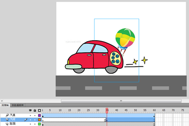 在這個單元我們要介紹如何完成當汽車行駛到舞台(編輯區)中間時,汽球從車窗漂出來,並消失在天空中,一起來試試看吧!